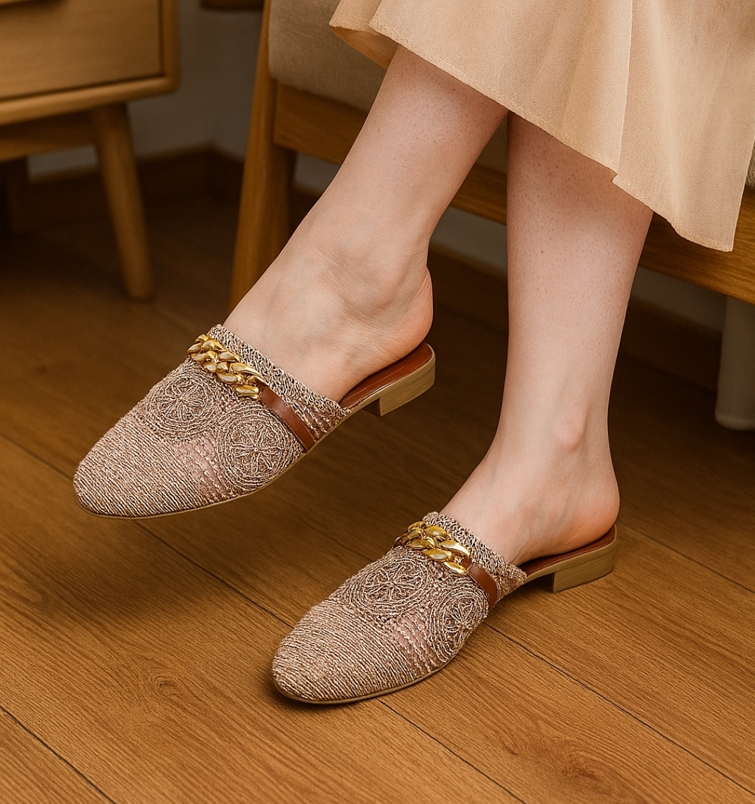 این دمپایی صندل زنانه، جلو‌ بسته و پشت باز است. صندل میول نمونه بارزی از خلاقیت و تمایز صندل‌های زنانه است. صندل‌های میول به راحتی پوشیده می‌شوند و بیشتر از دمپایی از پای شما محافظت می‌کنند.